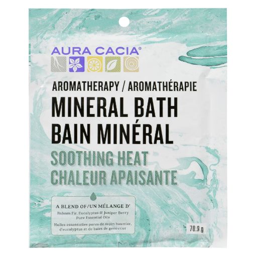 A BLEND OF Balsam Fir, Eucalyptus & Juniper Berry Pure Essential Oils Aura Cacia Soothing Heat Aromatherapy Mineral Bath creates a sense of warmth and comfort with the combination of balsam fir, eucalyptus and juniper berry essential oils. OUR PROMISE Authenticity Verified Not Tested on Animals No Synthetic Colors or Fragrances Paraben Free Safe for Spas and Whirlpools