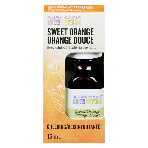Cheering Aura Cacia Sweet Orange is cold pressed for a fresh, sweet aroma. AROMA: Fruity top note positive CHANGE PROJECT Moving Lives Forward Learn more at auracacia.com OUR PROMISE: - Single Botanical - No Synthetics - GC Tested for Purity - Not Tested on Animals