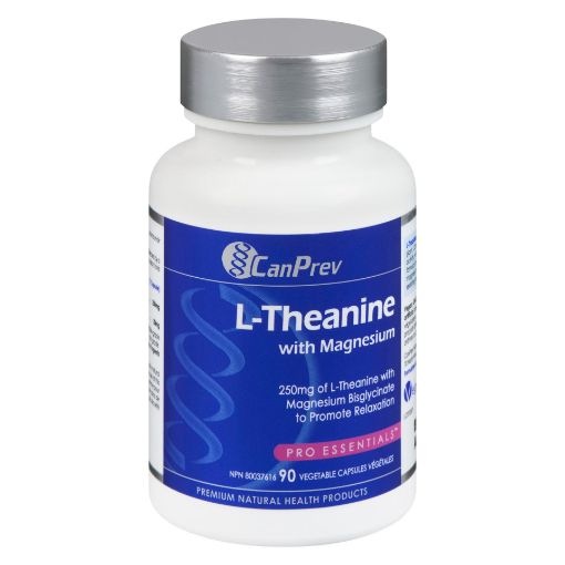 250mg of L-Theanine with Magnesium Bisglycinate to Promote Relaxation Premium natural health products L-Theanine is a non-protein amino acid that occurs naturally in the green tea plant, Camellia sinensis. Studies show that it induces alpha brainwave activity, which correlates with a feeling of relaxation. CanPrev's L-theanine formula provides an impressive 250mg of L-theanine coupled with 20mg of magnesium bisglycinate per capsule to promote a relaxed state without sedating effects, so you can stay focused and productive. Vegan, GMO free, no binders, no fillers. No gluten, dairy, soy, wheat, sugar, corn, artificial colours, flavours, preservatives or animal products. Vegan