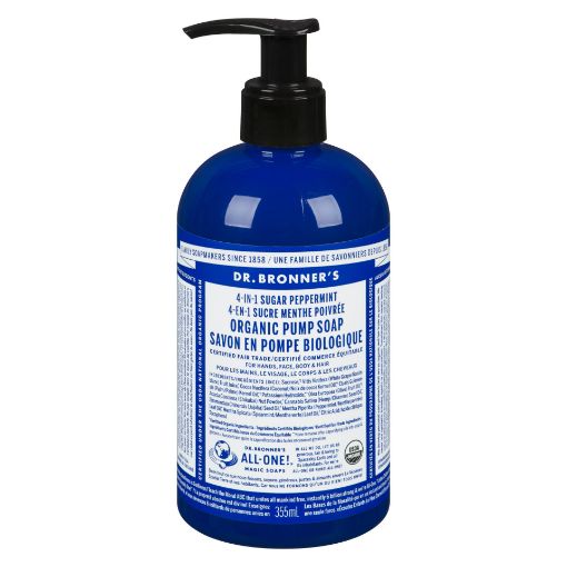 Organic For hands, face, body & hair No detergents Not animal tested Certified vegan Non GMO Family soapmakers 1858 We develop personal-care products that we are as organic and fair trade as possible. We never use synthetic foaming agents or preservatives to common synthetic ingredients. Dr. Bronner's was founded in 1948 by Emmanuel Bronner, a third generation German-Jewish soapmaker. He used the labels on his ecological soaps to spread his message that we must realize our transcendent unity across religious and ethnic divides or perish: "We are all-one or none!" The business continues to be run by his family. Dr. Bronner's is certified Organic Body and Hair Care in One Bottle Our Organic Pump Soaps are excellent for washing hands and face-place by your sink or in the shower! Organic shikakai powder and organic sugar make this soap an ideal facial cleanser-also perfect for washing hair. When using any of our soaps to wash your hair, follow up with a lightly acidic conditioning rinse, such as our own Citrus Organic Hair Rinse. Ingredients Good for Body and Earth Organic Fair Trade Sugar leaves skin hydrated and smooth; gives our soaps their caramel aroma and color and keeps them from clogging; supports our friends at Azucarera Paraguaya and their mission to provide the highest quality sugar while being stewards of the land and its people, providing education and healthcare assistance to Mill employees and Sugar Cane farmers, paying growers fairly for their sugar. Organic White Grape Juice has complex sugars that nourish the skin, leaving it soft and smooth. Together with organic sugar, it acts as a humectant and helps skin cells retain moisture. Organic Fair Trade Coconut Oil creates a rich cleansing lather. Our coconut oil comes from our Serendipol project in Sri Lanka, where organic compost keeps the soil fertile, every family farmer and worker is paid a fair price, and the fair trade premium funds community needs such as medical equipment for local hospitals.