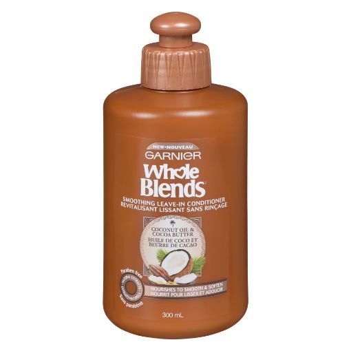 Paraben free Natural extracts Nourishes to smooth & soften Our luxurious & velvety, fast-absorbing formula blooms with an exotic fragrance of coconut oil & cocoa butter. It intensely conditions hair & banishes frizz, adding luminescent shine & long-lasting smoothness. The result: with every use, reveal sensuously smooth, lustrous hair, soft to the touch with long-lasting frizz control.* *When using the Garnier Whole Blends Smoothing system of shampoo, conditioner & leave-in conditioner treatment.