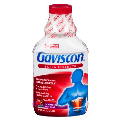 Security seal Begins working immediately For acid reflux & heartburn Acid shielding foam barrier Doctor recommended Day and night-time relief of heartburn, acid reflux and GERD (gastro esophageal reflux disease) symptoms Feel Gaviscon®'s foaming action start to work as soon as you take it Forms a protective barrier that blocks acid reflux for hours