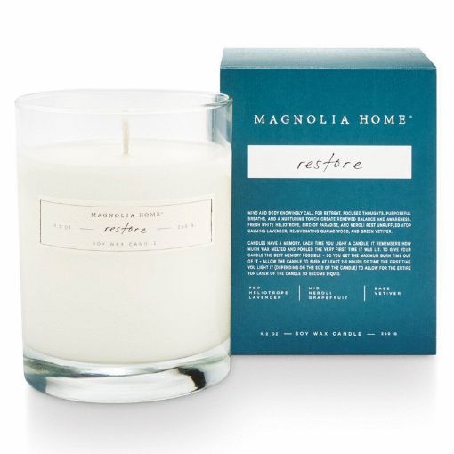 MAGNOLIA HOME BOXED GLASS CANDLE - RESTORE 9.2OZ