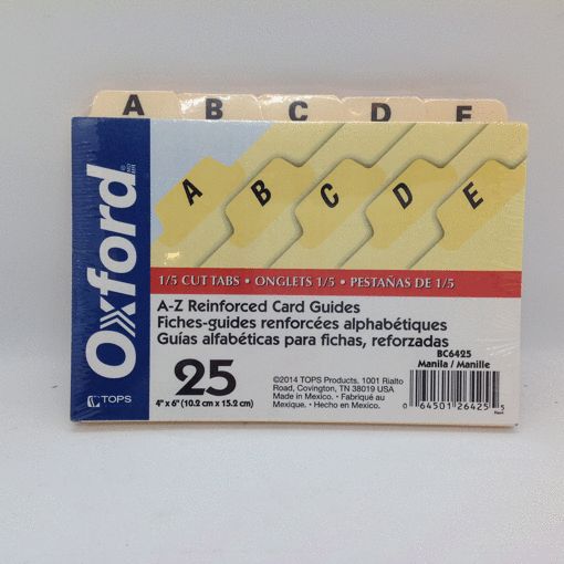 OXFORD A-Z CARD GUIDE 4X6INN 25S
