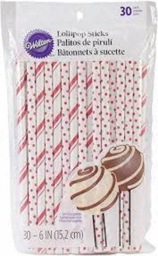 WILTON TREAT STICKS - RED/WHITE 6" 30S
